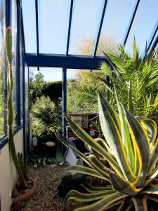 There are lots of different types of plant in the Blue House, the majority of them plants with a point, or several hundred points. Most of them now having sunk their roots deep enough to grow without any watering.  One cactus is 8 feet tall with spines up to 2 inches long.  Some of the smaller ones have doubled in size over the summer. All, as I say, very spiky.  It is becoming difficult to walk through the Blue House now without being attacked.  Even the small ones will nip at your ankles.