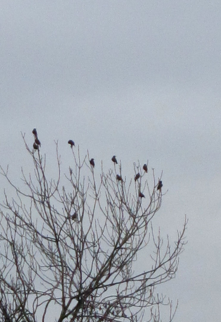I don’t know whether it is the return to grey weather or the insidious effect of Grey Britain but I seem to be becoming increasingly grumpy. Seeing as I’m already well established as a Grumpy Old Man increased grumpiness can’t be a good thing. The photo below seemed to sum it up for me, grey, gloomy background, birds sitting in the top of bare trees looking dejected ……