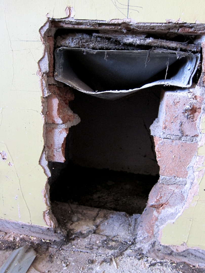 Fat chance. The hole was huge because a new flue had to be fitted which would meet modern standards. Why is it that standards for gas and electricity installation change every time you blink? It seems that any gas or electrical installations fails to comply with ‘current’ standards after about 10 minutes.
