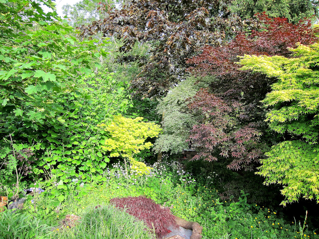 And the wild garden? A number of years ago we started to prepare for old age and decrepitude by planting Acers at the bottom of the garden to replace the ‘bottom lawn’, the intention being to replace an area which required regular mowing with an ‘Acer Glade’ requiring zero attention. We let the chickens roam in the area, fencing it off from the vegetable garden. They loved it and the eggs were fantastic with rich orange yolks.