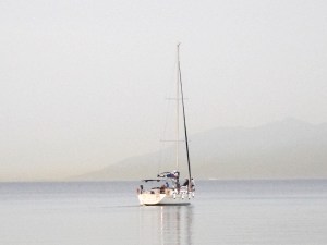 Taxi back down the Kardamena and we dumped the stuff in the hotel where we were overnighting and then ambled down to the seafront for a drink and a meal. It was very relaxing sitting waiting for the meal and chatting. The boat and the calm sea which Tim spotted just about summed up the mood.
