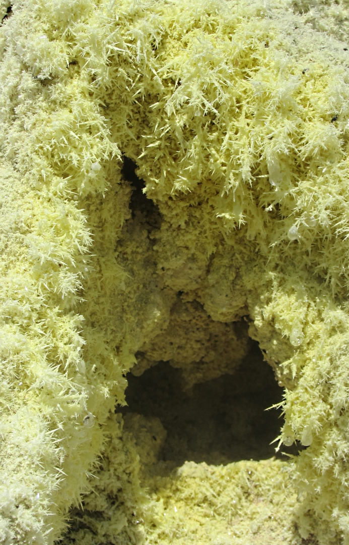 As always it was very hot, particularly on the floor of the main crater because of a combination of overhead sun, reflection from the white rocks of the curved crater walls and floor, absence of any breeze, the heat of the volcano coming through the crater floor, and the sulphurous gases emanating from the many fumaroles (fissures). I know I can’t take more than half an hour of the heat and sulphur fumes and so it prove with Ruth and Tim.