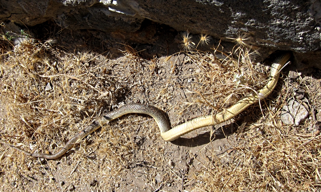 Anyway, zooming along the last section of path on Saturday my thoughts were on a refreshing swim and so I was more focused on my feet while keeping half an eye open (how on earth can you keep half an eye open?!) for a snake on the high stone wall up on my left. I was walking so fast I went past it and had to back-track a few feet. The rear portion of a snake with its head and who knows how much else firmly wedged into a hole in the bottom of the wall of an EU-funded renovated ancient stone-built house!!!!!!! It was knotted up and mostly upside down (the snake not the house). I took a photo and then tentatively, very tentatively, took hold of it and straightened it out. It was warm and very flexible so clearly hadn’t been there for long. The bit outside the wall was over a metre long. What I didn’t know was if it was alive or just-dead so I didn’t give it a tug to see if it would come out from the wall. The other end was probably a bit sharp and even more probably a bit cross at being disturbed at whatever it was doing.
