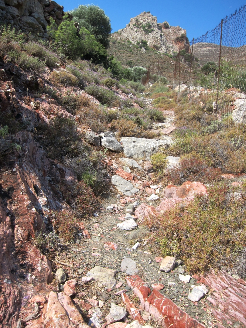 It was a brilliant walk. The paths on Tilos are very different from those on Nisyros. At this times of year, as Dedicated Blog Followers will have appreciated, the paths on Nisyros are strewn with dried grasses and ancient strains of oats and barley. None of that on Tilos. The stony paths pick a way through the herbs and the very many spiky plants which bite your ankles. And, amazingly, there didn’t seem to be the vast numbers of spiders bobbing around in mid air to ensnare your face and hair in web.