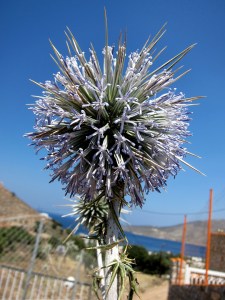 I also noticed that some of the very spiky plants which I had seen on Nisyros with closed flower spokes had started to open on Tilos so it may have been warmer for longer. I also came across some shrubby trees with flower spikes. We had seen similar on Symi but with blue rather than pinky-white flowers. Enfys had said that she thought they were called Vitex. I checked on the internet, now that I‘ve got a reliable connection in the hotel, and it does seem that they come in different colours. It also appears that they are very much prized for medical purposes with web sites offering them for sale.