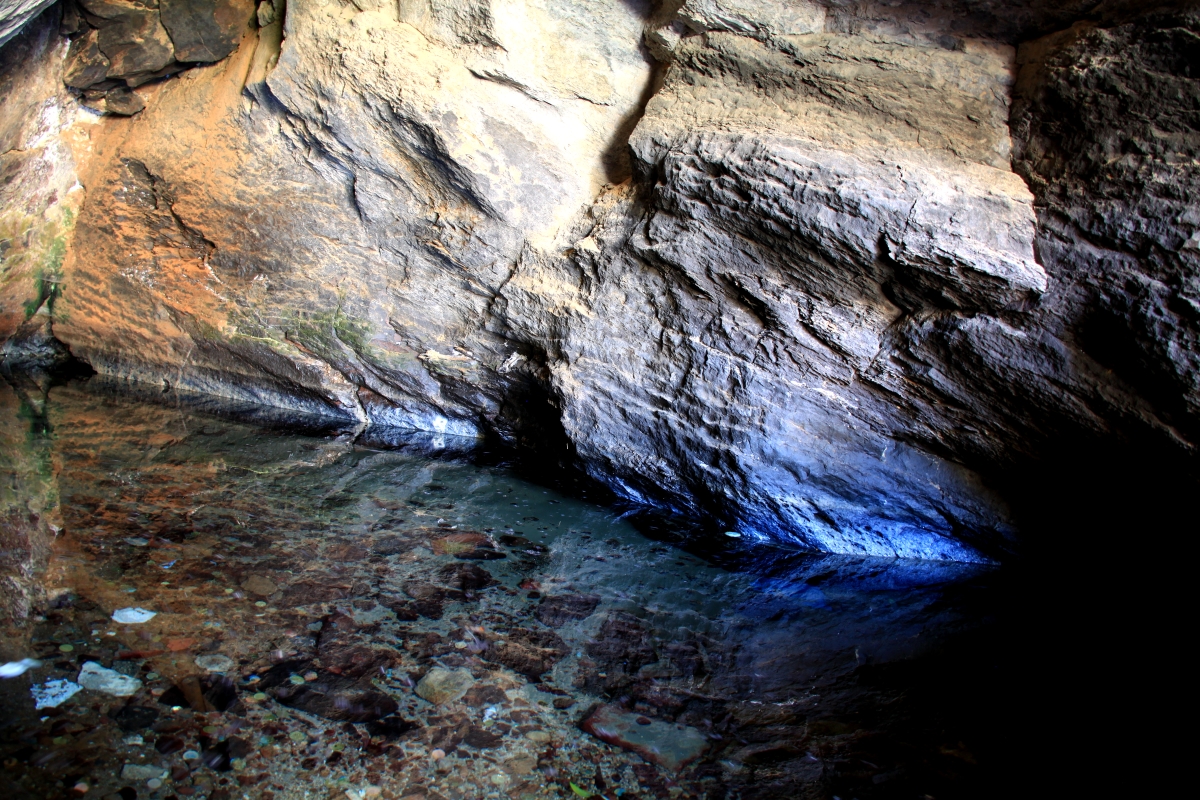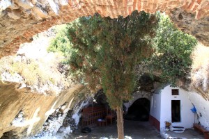 This section of coast is very different from the Western coast which I have walked a few times. For a start there are thermal springs from the volcano emerging here. At Loutra a little further along the coast is a geothermal spa, to which you can be referred by a doctor for treatment. At Palloi, just where the path emerged onto the coast road, is the remains of a spa used by the Romans and possibly even earlier than that by the ancient Greeks. The remains of the vaulted roof which they built are still very much in evidence as is the original spa pool at the back of a cave. There is also a tiny church built into the side of the cave and inside the vaulted roof.