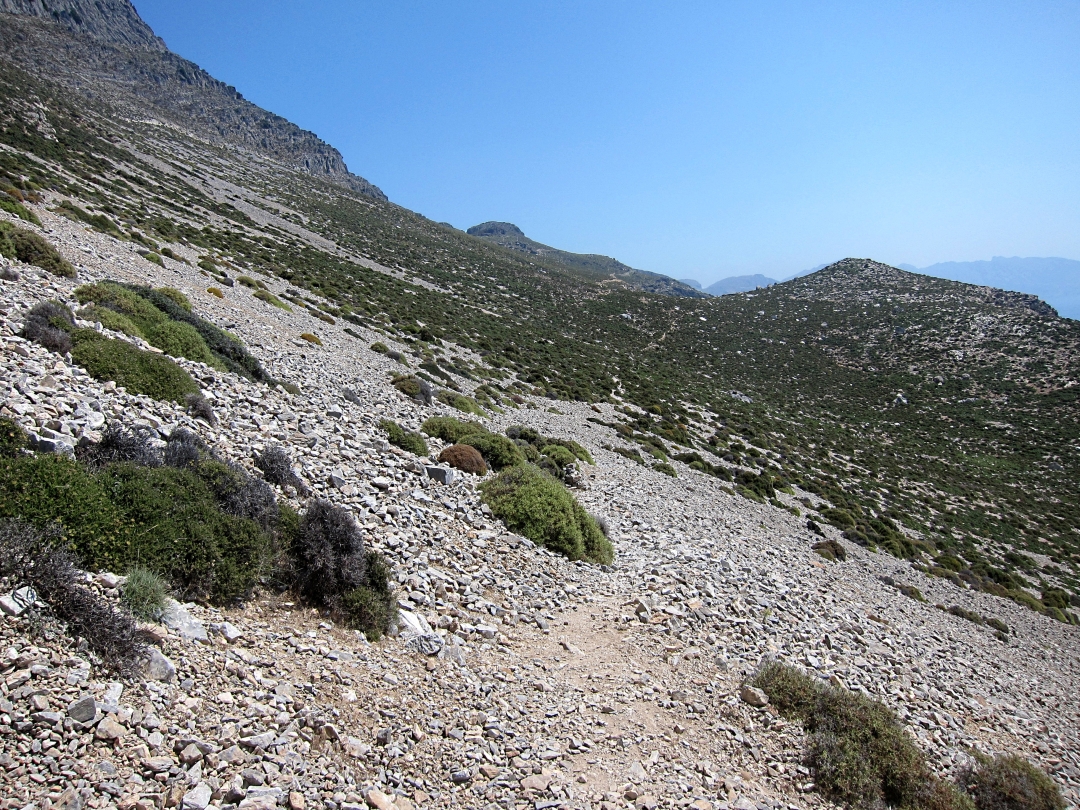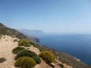 Path Number 1, or to give it its proper name, the ‘Palia Strata’ meaning ‘Old Way’, continued in dramatic fashion through the mountains, the clag lifted and then Eghiali appeared far below and the path dropped gradually down to the coast.  It took about 4½ hours in all and I enjoyed it so much I’ll probably do it again.