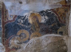 The lovely little church, there’s still remains of the linen what covered most of the frescoes when we visited.