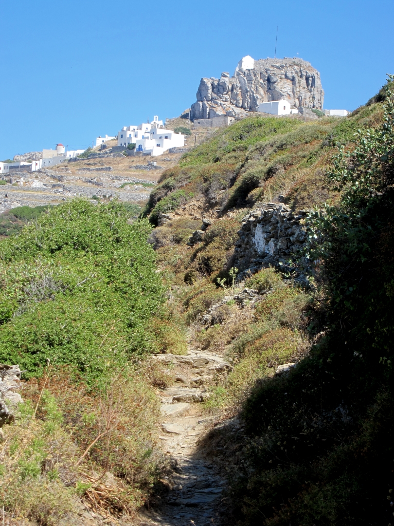Thursday and I turned my back on the mountains and went the other way. I decided to head for the Katapola, the main harbour, by following Footpath No. 2 in ‘Footpaths of cultural and historical interest’. And a very good path it is too! Very clear and straightforward. Well, zigzagging-forward for part of the way.
