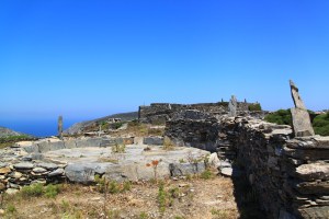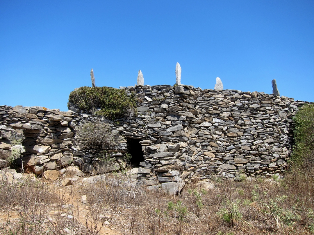 I struggle through waist high prickly stuff to get to it and then climbed the 8 foot stone wall to look inside. What struck me was the donkey droppings. Where there are droppings there must be donkeys and they certainly didn’t come this way. I found the entrance around the other side and then had another attack of Repetitive Photo Syndrome. Fascinating place. Not like any of the other castles I’ve seen, more like a stone built fortified hill top. I don’t know if the walls are the original height or if the vertical stones set at intervals in the top of it were part of the original, but I was impressed.