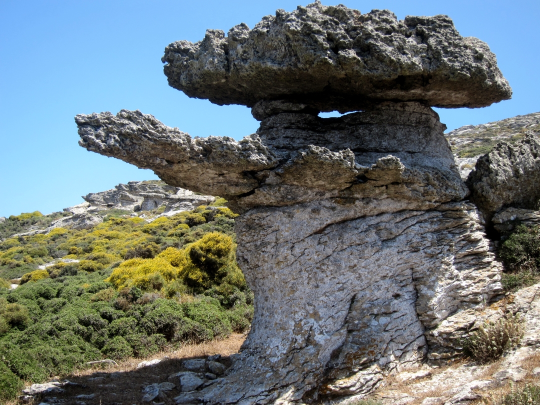 The plan was to catch the bus to Katapola, the main port at the other end of the island and then to walk back, climbing Oros Profitis Ilias on the way. And that’s what I did. It was planned as a walk from coast to coast, an ambition inspired by the Canadian motto “A mari usque ad mare”, not the US patriotic song, though admittedly the line in the song is more poetic.