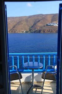 The perfect Greek balcony: loking straight down to the sea, sun in the morning and evening, shade in the heat of the day.