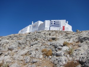 I had seriously underestimated how much fitness I had lost while back home and how much I was not acclimatised to the heat any more. Temperatures were in any case about 10 degrees hotter than they were on Amorgos where I had last been walking. I seriously considered committing a cardinal sin in my walking philosophy and stopping for a rest on the way up the mountain. I have long been a pain when walking with others in insisting that you shouldn’t stop at all on the way up because lactic acid forms in the muscles and only makes it more difficult. The preferred strategy is to set a pace that you can maintain all the way to the top. For the first time that I can remember I seriously wondered if I could make it to the top in one go, my leg muscles were getting to the point of refusing to go any further. The path was certainly steeper than the other one and maybe I set too ambitious a pace, but I reckon that the nub of the matter was that I had lost fitness.