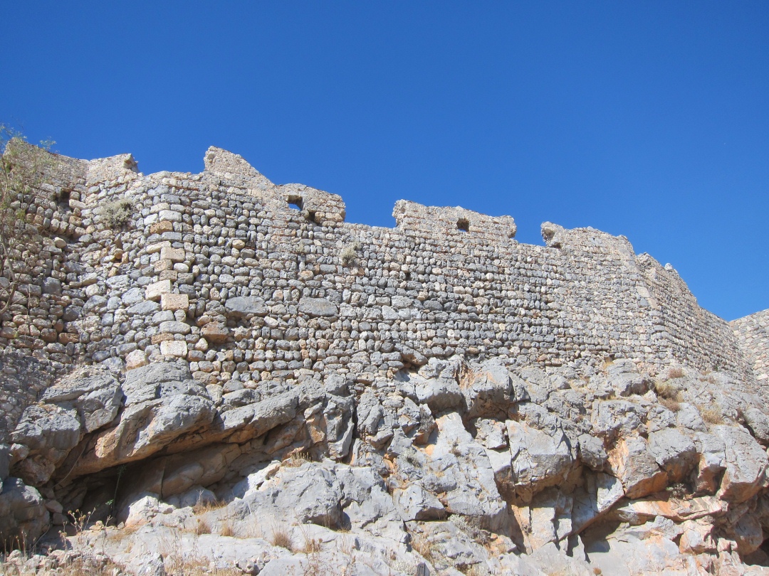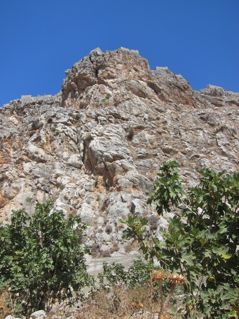 Once down at Hora I had 2 hours to kill before the bus back to Emborios so I suppose rather foolishly, somewhat refreshed and caffeined-up by a frappé, but really out of bravura, I decided to climb up to the Castle which towers above the old village on a massive crag. There is almost as much climbing to do inside the castle walls as to get up to the entrance and the top is well out of sight of the entrance gates. I didn’t know what time the gates were locked so not wanting to get trapped inside I made my way back down in plenty of time to have a cold orange juice and catch the bus.