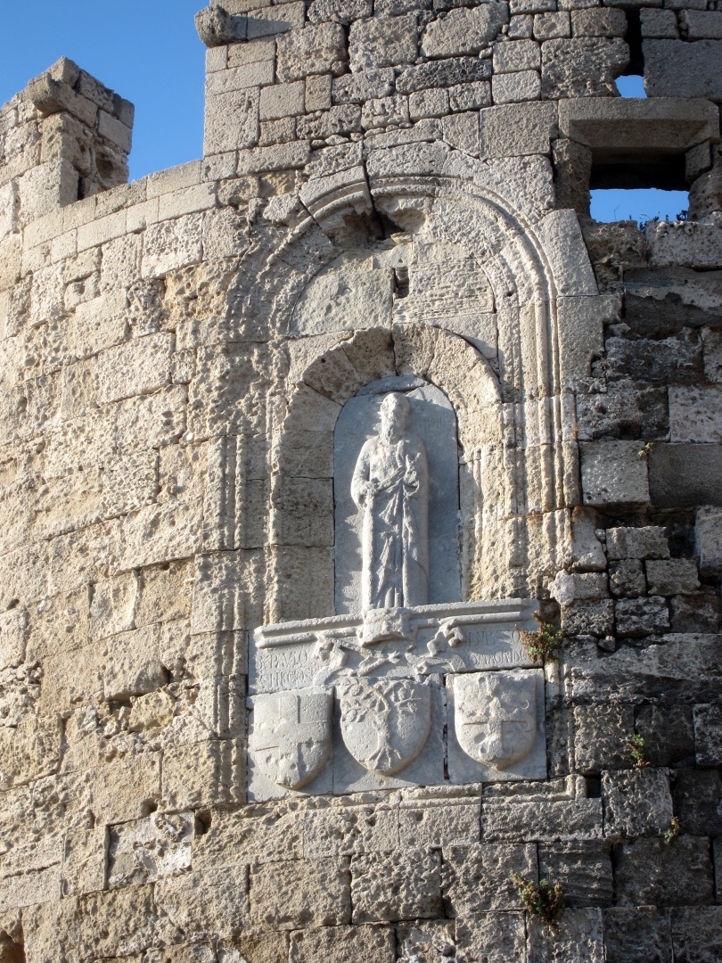 Thursday morning I woke at 07.00 having set my alarm clock wrongly but still in good time to pack things away, have breakfast and check-out (€50) before walking to Colonna Harbour to catch the Dodecanese Pride at 08.30 for the 3½ hour trip to Kalymnos (€38). In fact I had half an hour to spare so after dumping my Big Bag in the right place on the ferry I walked back to the Old Town to take a few photos in the early morning light and to get a bottle of water – it was very hot and I was very thirsty. I should have guzzled more juice and coffee in the hotel.