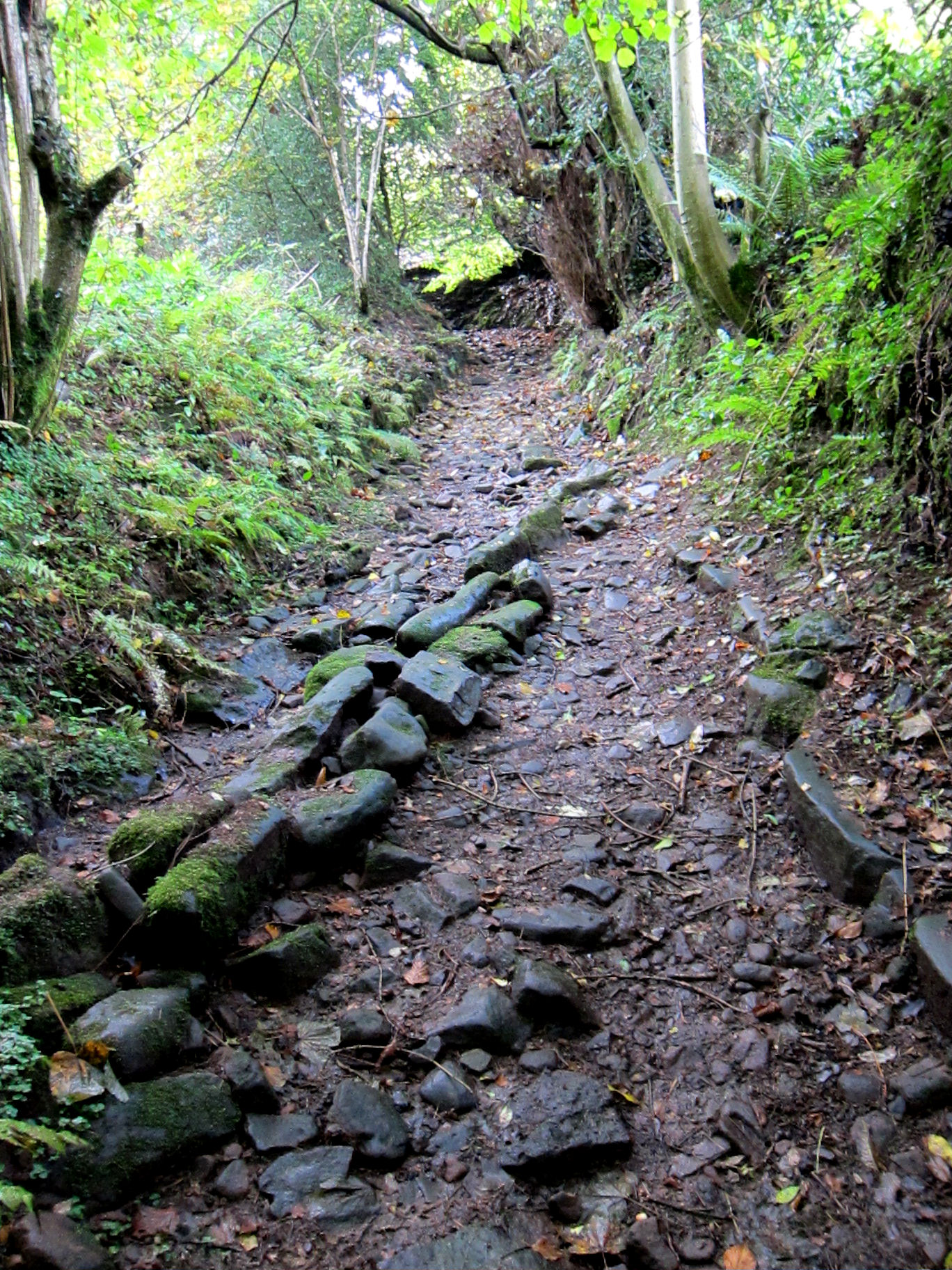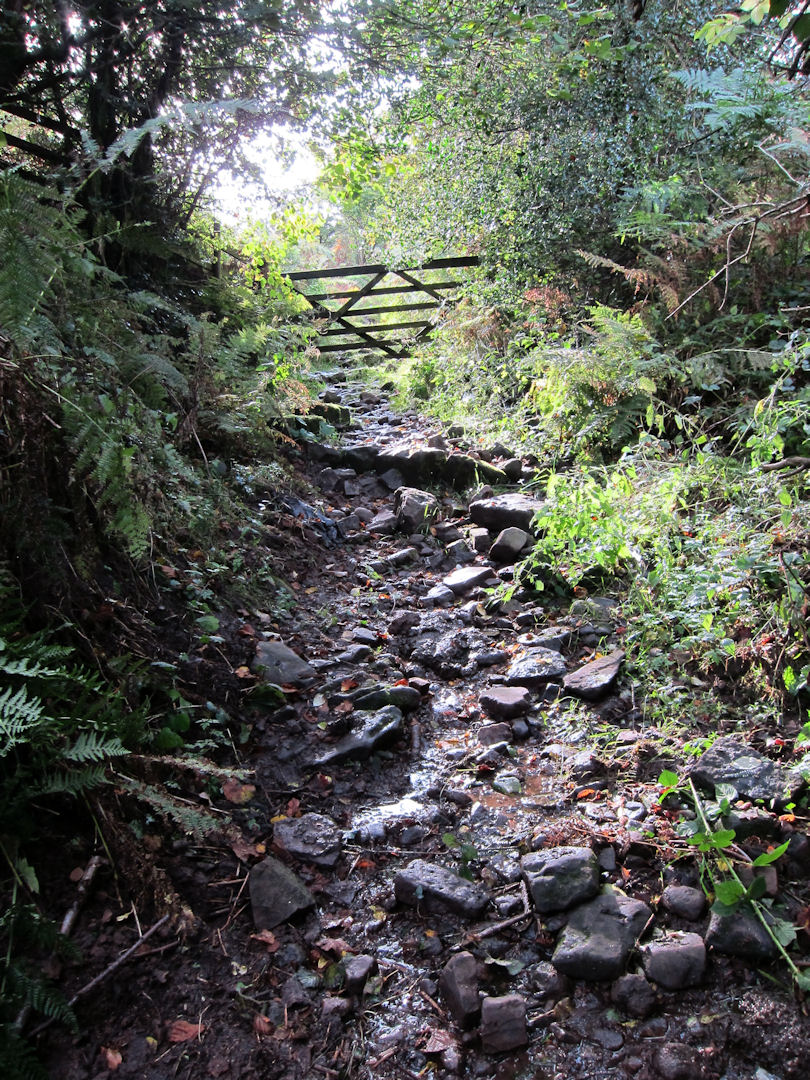 I have never know this path to be dry even in the height of a 'long hot summer'. Drainage channels across it have broken up and the stones washed away.