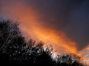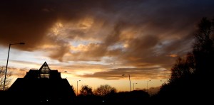 In the event we didn’t get to travel on the bus and so were saved from finding out that the Ultimate Question turns out to be “What is nine times six?”. My view is that the Answer is correct and it is the Question which is wrong. When we came out of the coffee shop it had stopped raining and the sky to the west, glimpsed above the top of the shopping centre, was lightening. So, emboldened by high-dose caffeine injection, we walked back along the riverside path. And very glad we did.