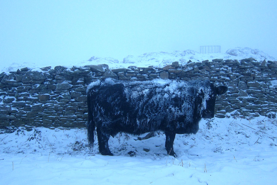With a forecast further dump of snow on Saturday turning to rain and rising temperatures overnight I had to go out and play yet again, one last time. So I walked back up the ridge, this time covered in cloud and driving snow. Wonderful!! I treated myself to soup and a roll in the Goose and Cuckoo and then instead of walking down to the village on the main road and catching the bus back home as I had intended, I decided to walk back because it was still snowing heavily. I made it off the mountain just as it was getting dark. Great!!