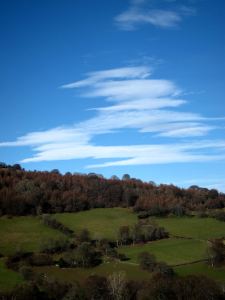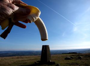 There were a great few days at the end of last week and over the weekend so I went out walking a good bit. On Thursday I walked up the ridge to the Goose and Cuckoo for dinner again and on Sunday I took a banana for a walk up Garn Wen, the local mountain, and then sat on the top in the sunshine and read my Kindle: very Last of the Summer Wine.