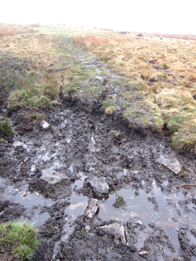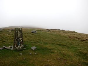 But in the end I found it all and was ready to go. It was grey and wet when I set off and when I got to the top of the ridge it was also very windy. It got greyer, wetter and windier. Not really a day for looking around and taking in the great views from the mountain top. First, there were no views except for the bit of rain sodden path in front to me. Second it was head-down walking weather because of the horizontal rain that could take your eye out.