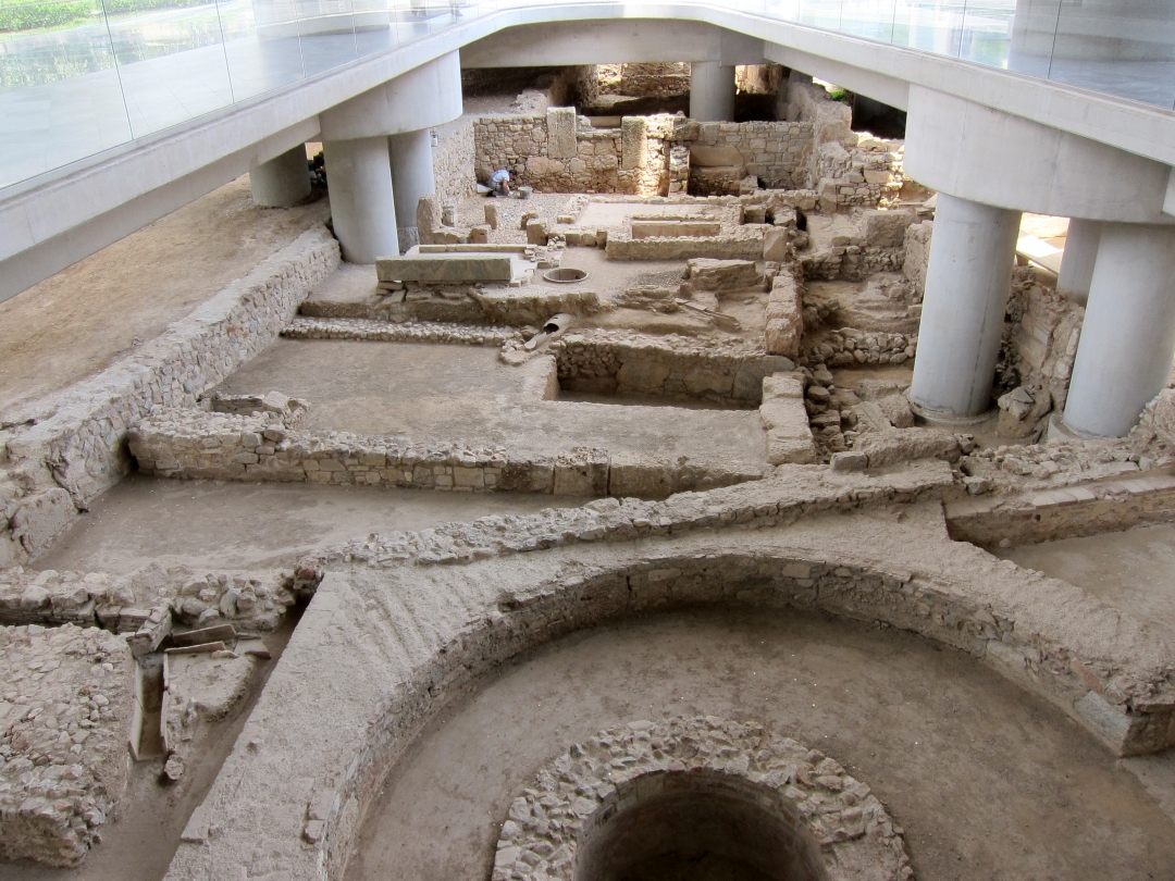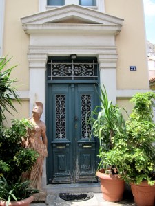 Backpacks have to be left in a ‘cloakroom’ on the way in. I don’t know whether that was in case anyone tries to rob-off with any the myriad smaller exhibits (all behind glass anyway) or whether they might knock into things. But it was no inconvenience …. and free. I soon found out that photography is only allowed on the top floor but, once up there, again the camera clicked away merrily. Having a cup of espresso sitting on the roof terrace looking up to the Acropolis was a good end to the visit. Very definitely worth the entrance fee. As an aside, the loos on the top floor are probably the best you’ll encounter in Greece or anywhere else for that matter.