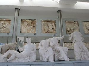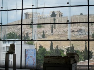 I had been told that the new Acropolis Museum was dramatic and it most definitely is. The glass floor of the approach ‘path’ shows the archaeology still emerging beneath the massive new glass structure as the ‘dig’ and restoration continue. Being used to free museum entry in the UK I was doubtful about how much this visit was going to cost but plucked up financial courage, traumatic for an honorary ‘Cardi’, and was amazed when it turned out to be only €5.