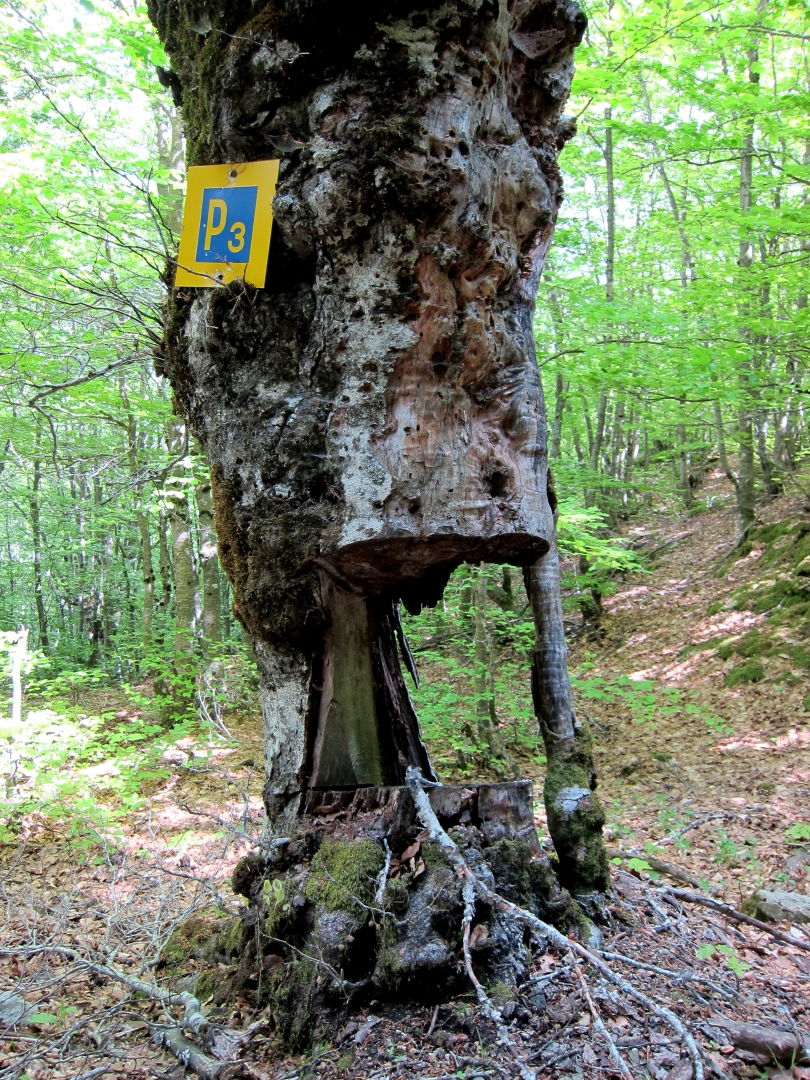 Why a chunk has been cut out of this dead tree with a chain saw is difficult to imagine, but at least the ‘P3’ sign is left in place.