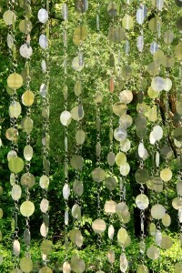 In 2006 an art exhibition was staged partly in the vineyards of Agios Nikolaos Monastery. This one remains, the discs reflecting the light according to the angle you look at it, in this case the blue of the sky.