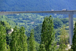 I was heading down to the river and a couple of monasteries there but I didn’t realise quite how far down it was. The path zig-zags down some 250 metres below the town. It should have been obvious how far down it is because the new motorway viaduct crosses the valley at a high level and that itself is a long way below the town.