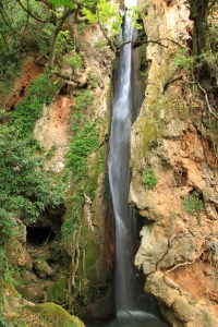 On the way back down from the mountain-top Castle-of-Many-Names I was tucking into mulberries from a tree alongside a small church, having been invited to do so by a Greek lady I had met earlier, when I was hailed by an English couple who have bought a house here. They offered to show me The Waterfall. On the way up I had seen an area marked ‘Waterfalls’ with a few pretty insignificant and unimpressive examples compared with those at Metsovo. I politely agreed the kind offer. I wasn’t in any hurry after all. I’m glad I did. The way to it was pretty obscure but rounding the last contortion in the path and it was a real ‘Wow!!’ moment. Not as much volume of flow as at Metsovo but far more impressive. About 60-70 foot vertical drop down a narrow water-smoothed channel in the rock. This is the positive benefit of the higher rainfall in the mountains. Out of deference to my guide I took only a couple of photos but will go back and spend more time there.