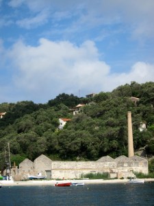 The now disused factory at Logos where waste from olive oil production was reprocessed to produce more olive oil for the manufacture of soap.