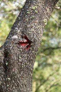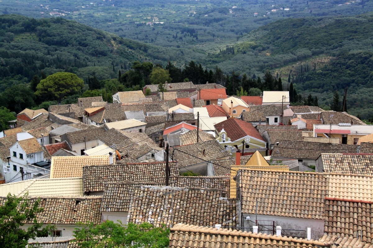 Still buzzing from that, and long after it had stopped raining, from the village I walked back down the path which the English couple had suggested might be the southern end of the ‘Corfu Way’ which I hadn’t heard of but determined to find out more.  At occasional points the path was marked.  I spotted one red arrow and half a dozen red spots which served as confirmation that at the last junction I had made the right choice rather than helping to make the choice.  It led me back to the ridge-top track I had followed earlier and then into Kouspathes again.