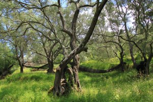 Turned out to be a very good decision indeed.  I soon got onto a narrow dirt track lead gently upwards along the ridge.  As I ambled ever higher through olive groves festooned with rolled-up black netting the only two vehicles coming towards me were agricultural with loads of olive wood cut for the fire.