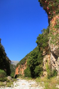 There is the beginnings of a gorge within 200 metres of the other side of the main square …. I love gorge walks …. and next to it are 2 very well stocked supermarkets. After a preliminary amble up the gorge at the end of the afternoon I stocked-up in the supermarkets for breakfasts and banana/nutbar midday meals. There is a walking and climbing shop within 50 metres which stocks good quality gear and 1:25,000 scale walking maps of the area. There are way-marked walks up into the mountains. I repeat: it’s good here.