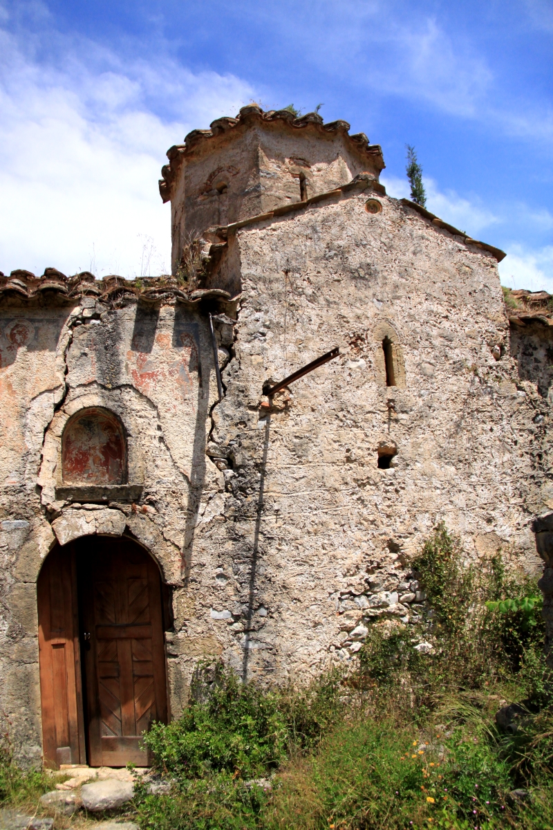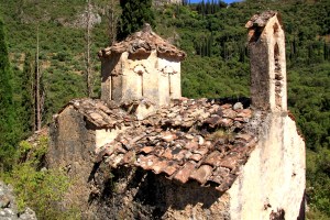 But what can be done about it? It’s easy to say that some government body, the equivalent of CADW or English Heritage, should repair and restore it. But what about funding? At a time when Greece is on the economic rocks there are understandably higher priorities. I know of instances of people whose pensions or salary has been cut by 50% recently. Would they support repairs to a tiny church in the Viros Gorge? It wouldn’t be simple even if a funding source could be found. There is no road access anywhere near to get materials in. It’s an hour from Kardamili on foot. I have seen no evidence of donkeys used for transporting building materials as on some of the islands (Symi, Hydra, Amorgos ….). No other way in other than lowering from a helicopter …. in a steep sided gorge. It is more remote than many areas in Britain. What techniques would be needed to repair it? Substantial underpinning? Infilling? Steel reinforcement? Much as I would like to see it restored my guess is that in 21st century Greece it is beyond the limits of possibility.