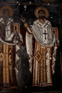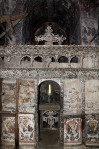 The monastery itself does raise serious issues of limits. It is badly decaying and damaged with great cracks not only over the door but showing in the roof/ceiling. The door is pretty new and has a brand new lock, but it was open. Timbers have been inserted inside to try to stabilize the roof but they have obviously got wet and rotted where they nib into the walls. It’s a great shame because the inside is completely covered in frescoes, probably 18th Century, including the roof, the arches and the dome. Some are extraordinarily well preserved, others less so.
