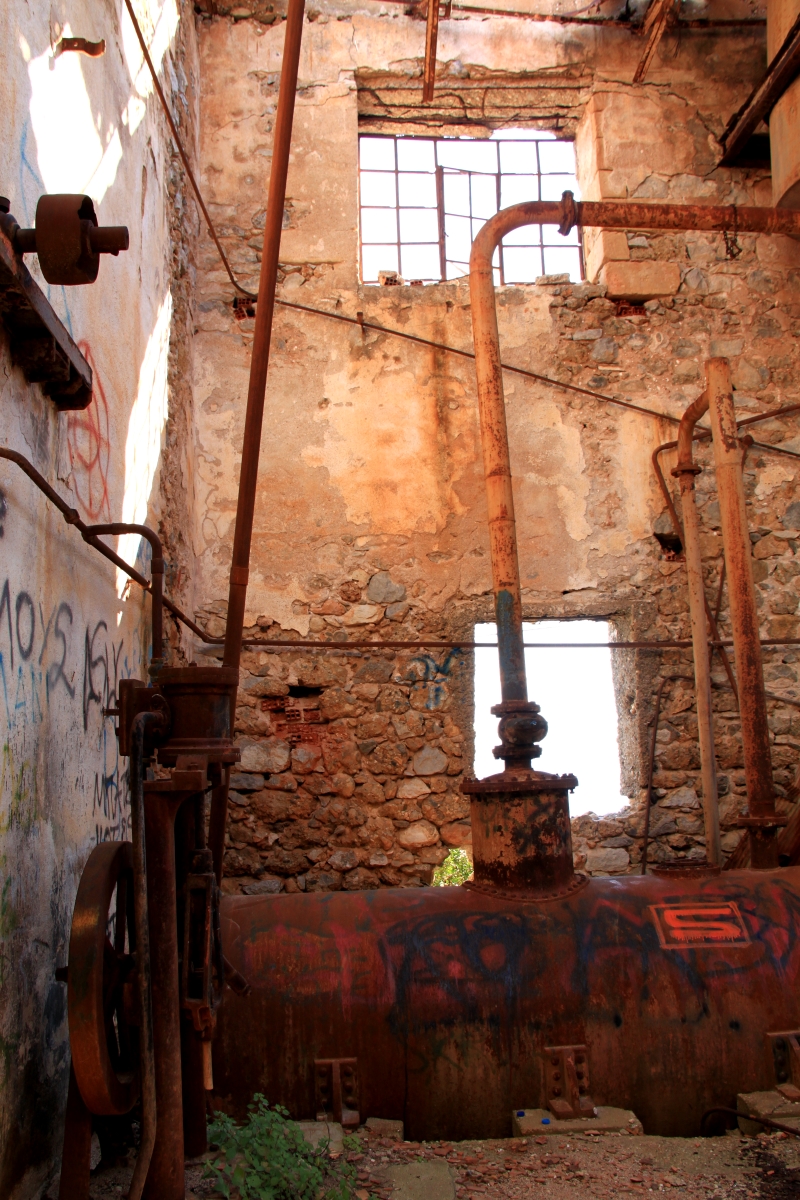 Having got bored with that I took the camera for a walk to the old olive oil factory on the edge of the sea. Once again, fascinating! No olive oil processed here for many years. A ghost of a place. I climbed up into the building and wandered around inside the skeleton. This used to be a thriving business, providing employment for local people. The only income for Kardamili now seems to be processing tourists.