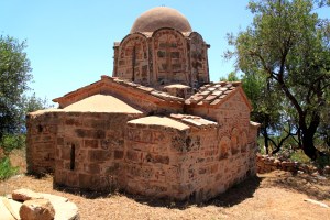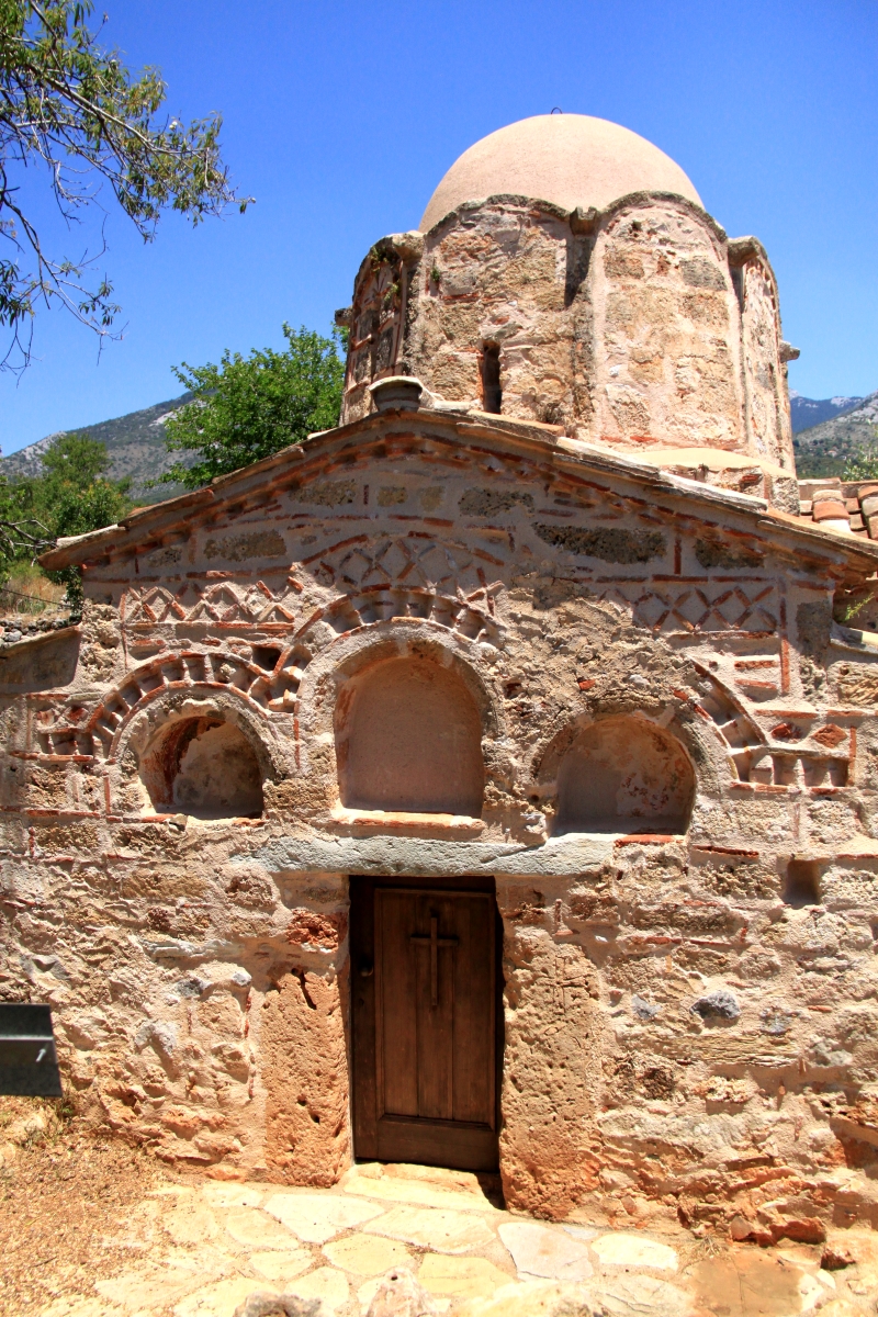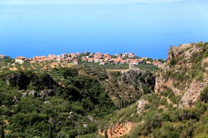 On to Proastia with its narrow, winding alleys and indeed not 3 but 4 Byzantine churches. Two of them had been restored with signs outside acknowledging the 75% funding grant from the EU. No access to the inside because they were locked but certainly very interesting architecture on the outside. They had been restored back to what they would have looked like originally. Another looked to have a pretty modern add-on and was the main functioning church of the village so in no danger. The fourth was very definitely in need of TLC. Without massive investment from the EU and the match funding of 25% from Greece it won’t get it.