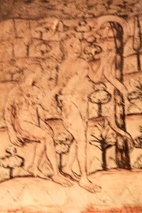 It’s pushing the allegory a bit too far but another thing struck me about the path. I dropped down towards another valley on a very good paved old kalderimi and was presented straight ahead by a gate made from 6 inch square reinforcing mesh for concrete. Gates in Greece are generally cobbled together affairs. On Symi they make them out of old pallets tied with bits of string or old rope. On Kalymnos they are made out of wire fencing stretched across a thick wooden frame with hinges make from bits of car tyre so you have to struggle to open them and they then whack you up the backside as you go through. On Amorgos, great paths but the gates are 6 inch square reinforcing mesh loosely hinged and tied with wire so they flop everywhere as you try to go through. The one I encountered today was just like the Amorgos variety. My heart sank, they are the ones I dislike most. If you’re not careful they rip your arm.