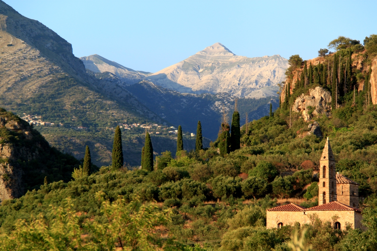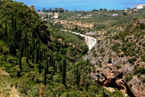 Climbing higher still there are views down to the bed of the gorge as it reaches Kardamili and the sea