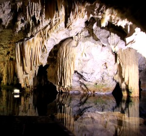 Then my second experience of the day of time-warping. The first part of the trip around the cave consists of 1.5 kilometres in a boat. I was told to sit down and having done so for 30 seconds was then ushered to what turned out be basically a blue punt. There were only 3 of us in the boat plus the boatman and he gently steered us through the most amazing series of passageways and caverns covered in multi-coloured stalactites. I have done a reasonable amount of caving and been in a couple of commercial cave systems in Yugoslavia (as it was then), the Peak District and the Mendips so I’m not new to underground ’pretties’ but this was fascinating. Around tight bends, duck your head to avoid getting it speared in low passages, into broad caverns. I have read that the trip is a waste of time and money. Don’t believe it! If you are in the area, go for it.