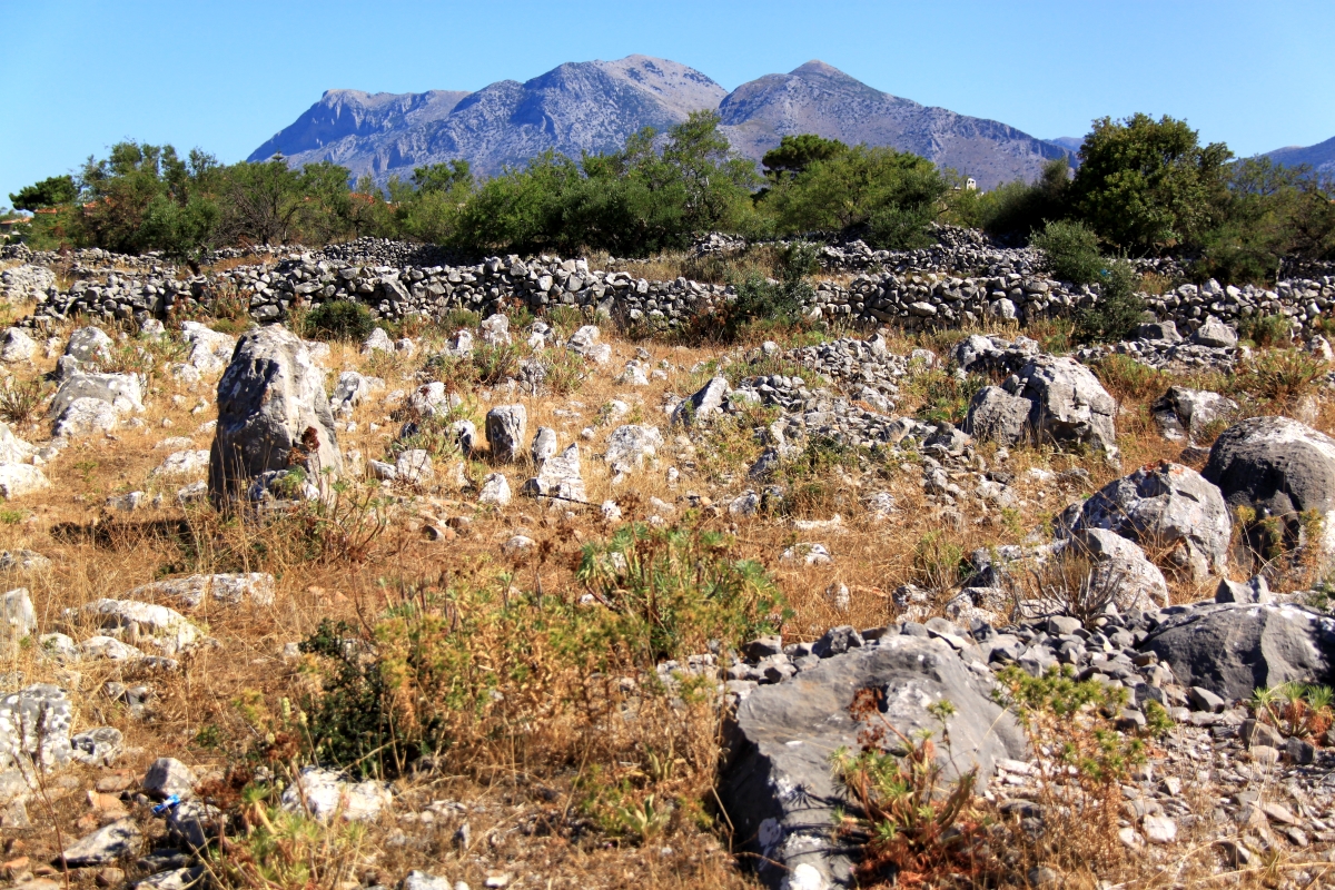 The landscape of the coastal plateau is dominated by rock and stone. The whole is divided up into fields which seem to be of three types: olive groves and rocks; hay and rocks; scrub and rocks, all divided up by stone walls. In some ways it’s reminiscent of West Cornwall but with added sunshine. And olive trees.