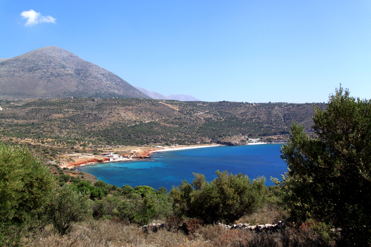 Looking back to the beach where I went for swims and the mountain above Pirgos Dirou which I climbed.