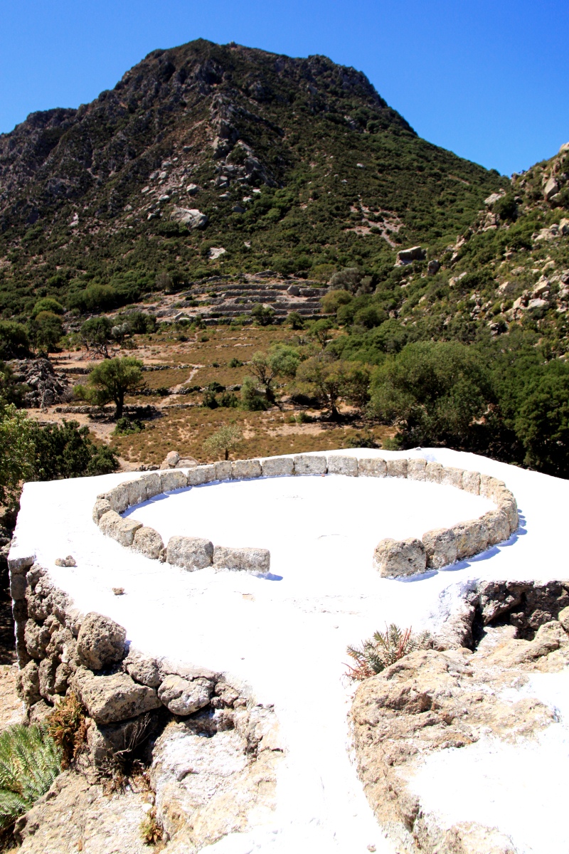 My walk on Wednesday exemplifies these timescales magnificently because they are all exemplified. I decided to go up to Nyfios a tiny deserted settlement dating back to Minoan times in a high-level hanging ‘valley’. It’s not really a valley, rather it’s one of a number of smaller caldera, but it has the air of a hidden valley, surrounded by high mountains .