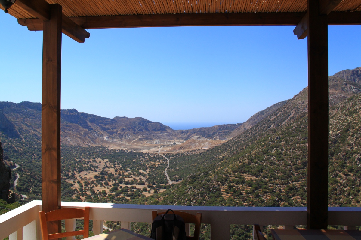 After the drama, as soon as we reached Emborios I headed for the Balcony Taverna for a frappé. I think it’s the most dramatic location for a drink I have been.
