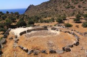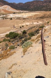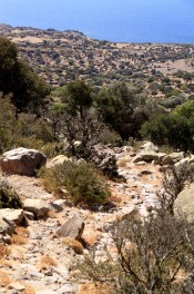 From the coast the rough track from Agia Irini crosses and recrosses the pipeline until it reaches the rim of the caldera and then drops down into it.