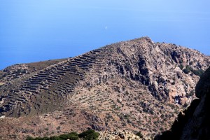 After enjoying being on top of the world for a while I headed back down and took a high level path which serves as the ‘back entrance’ to the Nifios caldera. The intention on Saturday was to spend time looking at the evidence of older settlement there.