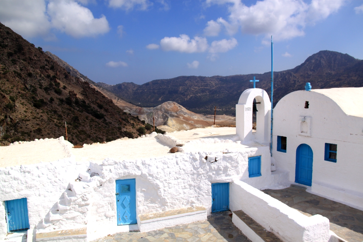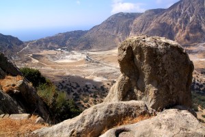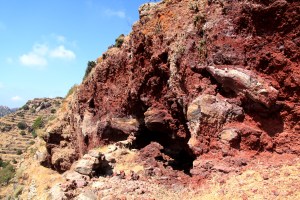 The path up to Nikia was ‘new’ in that I haven’t walked it in that direction before, always from Nikia previously. It’s probably one of the most dramatic paths on Nisyros, running around the inside of the caldera with views straight down into the crater with the hordes of trippers barely visible so far below. It is well used and reasonably well maintained with significant sections of it stone paved.