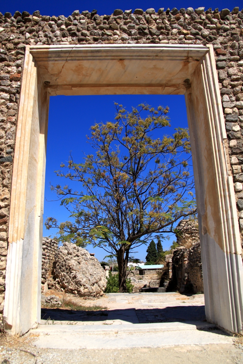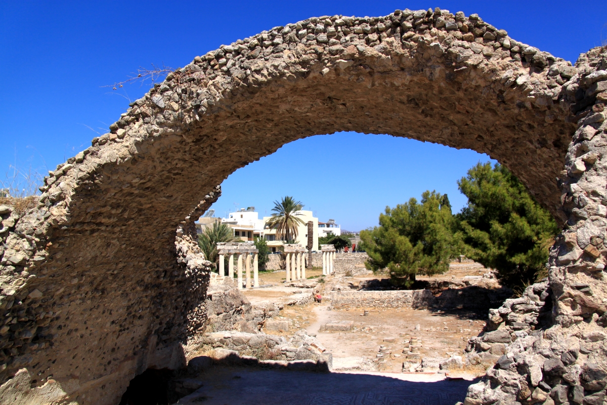 The good thing about Kos is the archaeological sites. There are many and some of the larger ones are open to the public completely free of charge. You just wander into them and around them like a public park. There are columns and arches and mosaic floors and remnants of domestic buildings and remnants of massive carved masonry lying on the ground everywhere. In Athens you would pay for this.
