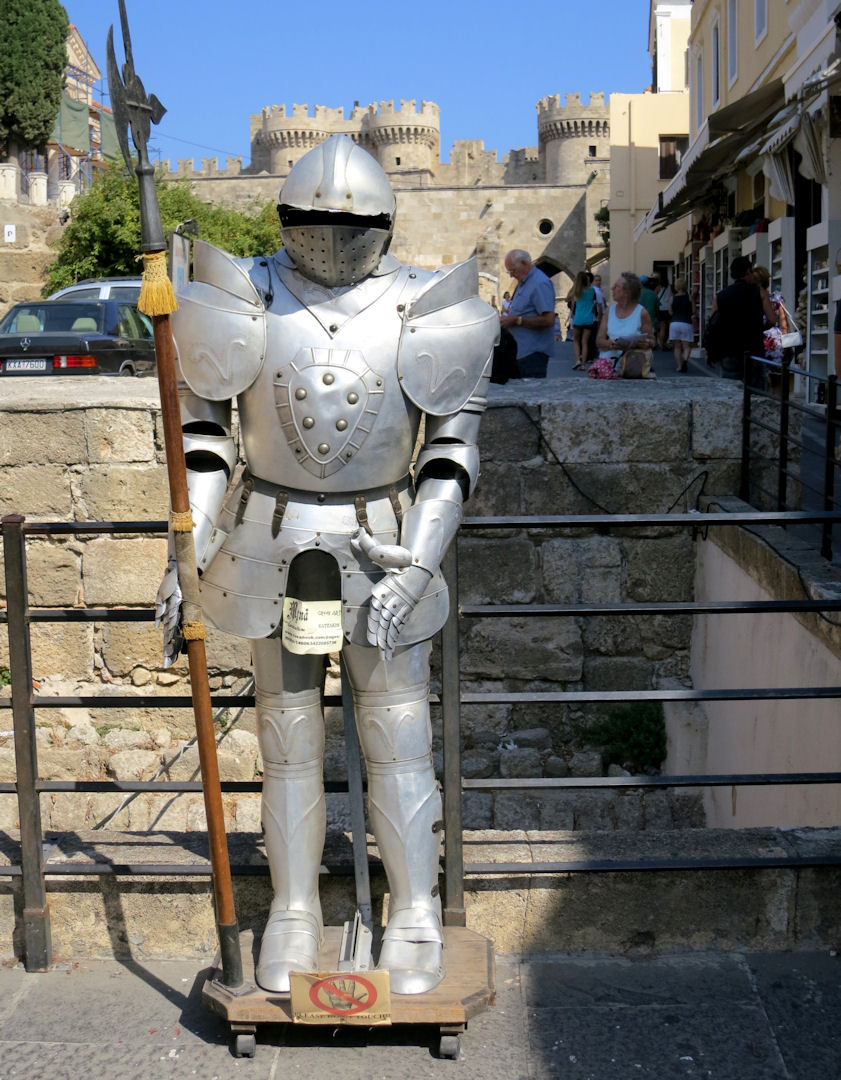 Somehow symbolic of Rhodes Old Town: a mix of genuine historical interest and tourist tat ….. under clear blue sunny skies